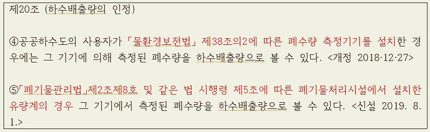다른 지자체의 경우에도 하수도 사용 조례에 폐수량 측정장치로 측정한 폐수량을 하수배출량으로 볼 수 있다고 돼 있는 경우가 많다. 이런 조항이 없다면 개정하면 된다.