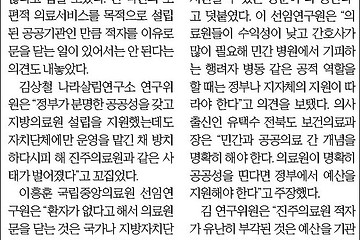 서울신문 141013 서울신문 2014. 10. 13. 2013.4.10[서울신문] 민간 병원과 연계해 중복 과목 피하고 취약층 진료 확대되도록 정부가 지원을 2013. 4. 10. 이전 1 다음